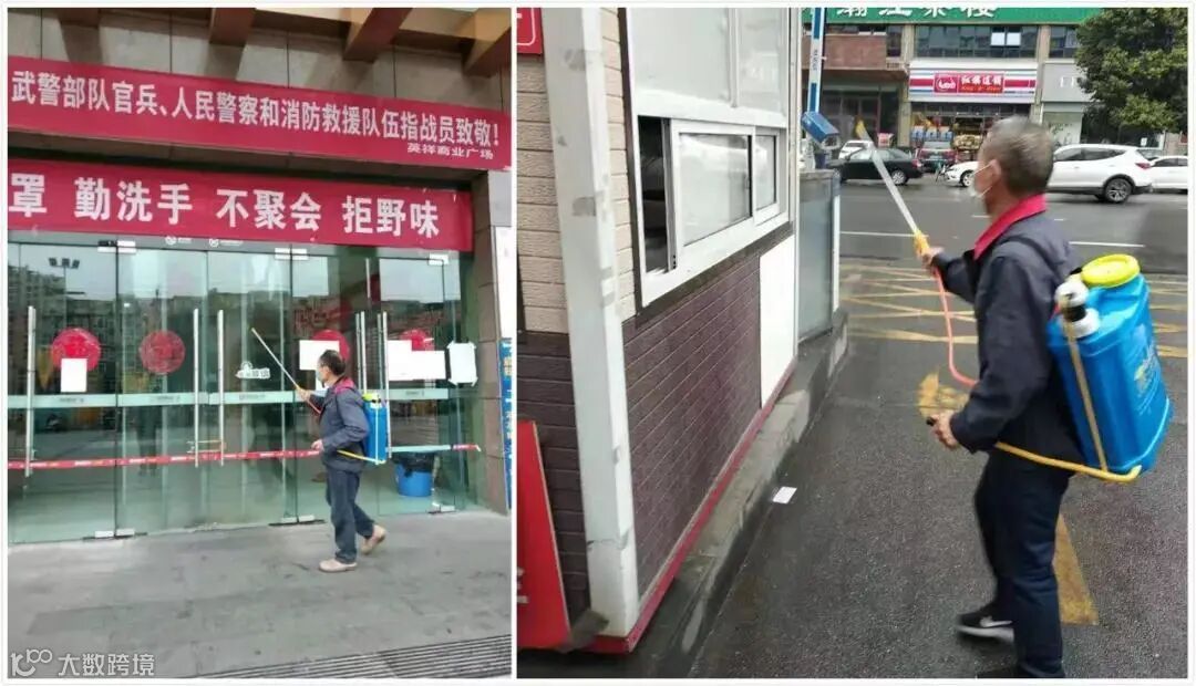 每日对电梯间、电梯扶手、卫生间、新风空调机组、停车场、消防通道及各店铺等公共区域实施开展消毒防疫工作,为消费者隔绝传染隐患。