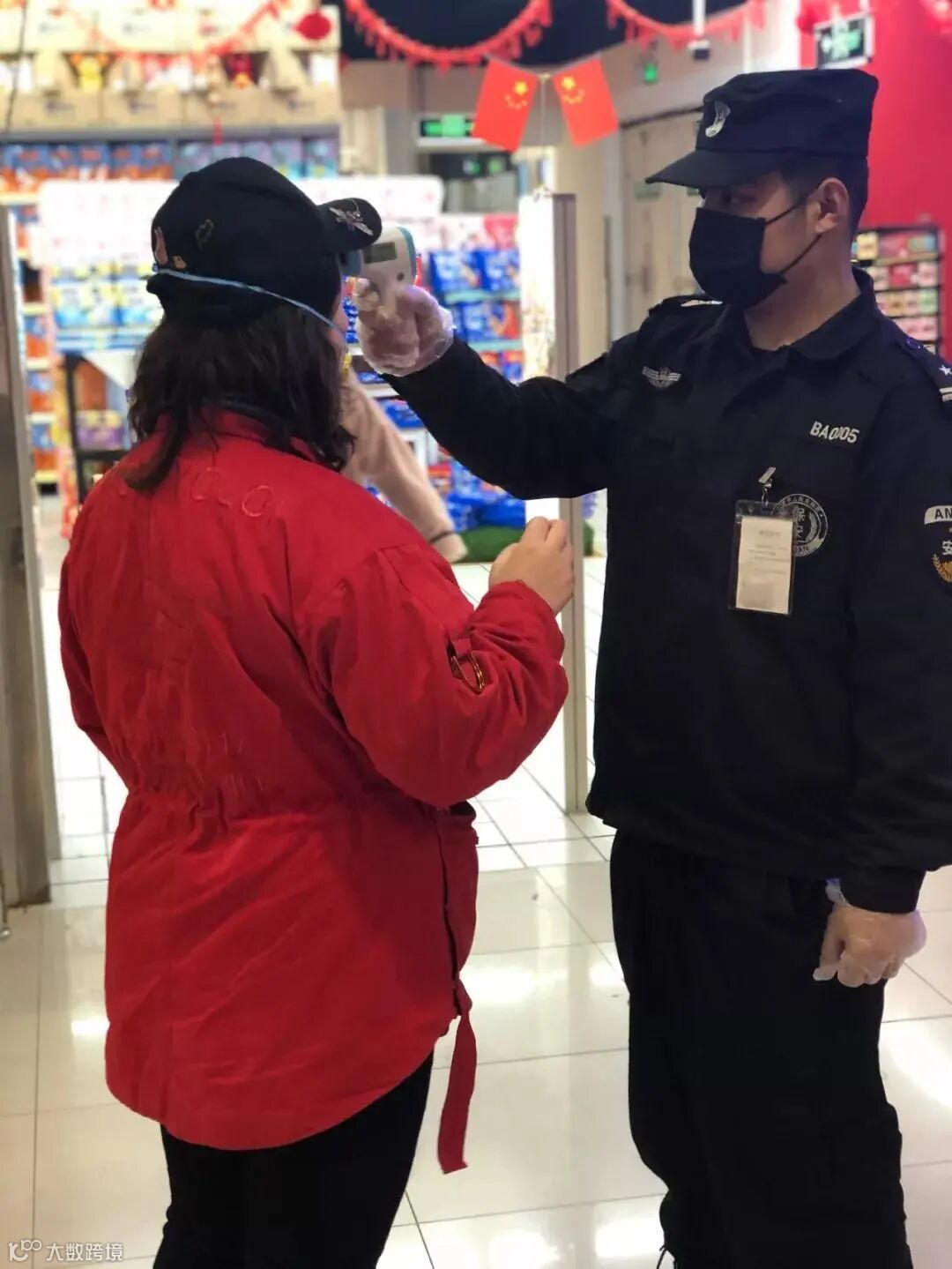 为保障每位工作员工与顾客的健康,商场超市的入口设有体温检测点,广场工作人员对每日坚守岗位员工及顾客进行体温测量,并持续监测在岗员工健康状况。同时,要求进出人员必须佩戴口罩,请顾客及员工积极主动配合。