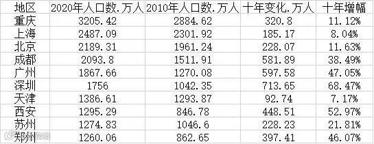 除了总量数据,七普数据还显示,过去十年中,中国人口增量最大的城市,第一是深圳,714万;第二是广州,598万;第三是成都,581.9万人。这反映了人口在向成都快速聚集。