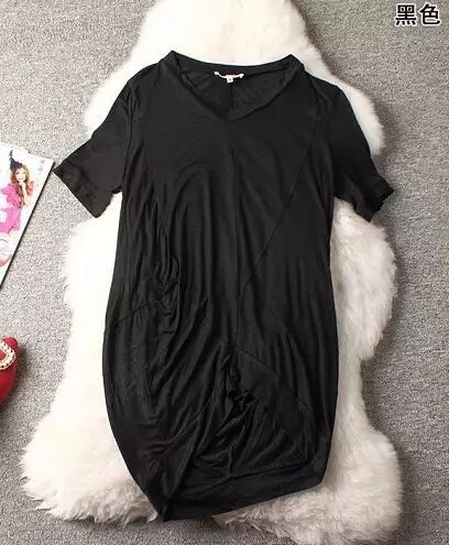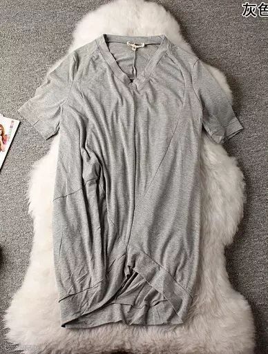 T恤,80元。宽松版型T恤,V领,修饰脸型,前短后长款式。