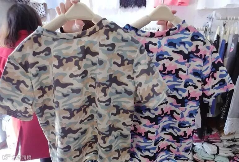 T恤,50元。短款迷彩T恤,经典圆领,时尚个性。