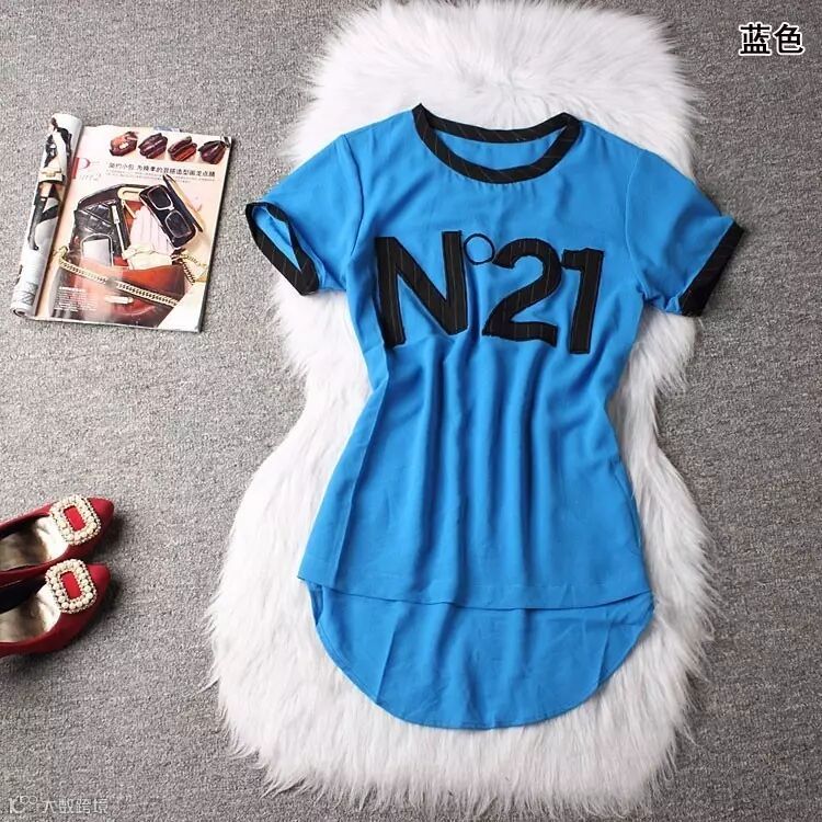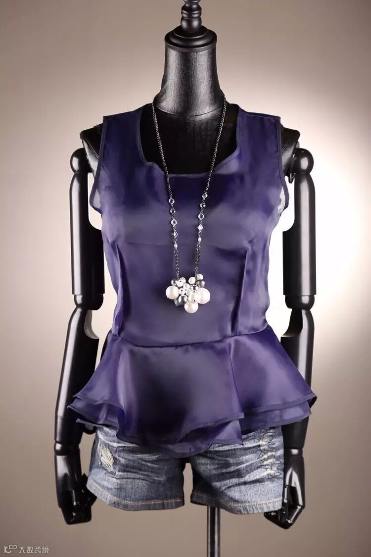 半袖,55元。雪纺纱半袖,前短后长款式,面料柔软,穿着舒适。