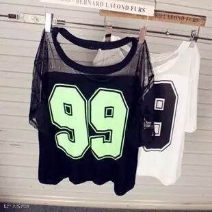 T恤,55元。运动范儿网纱拼接T恤,时尚个性,轻松打造出街范儿。