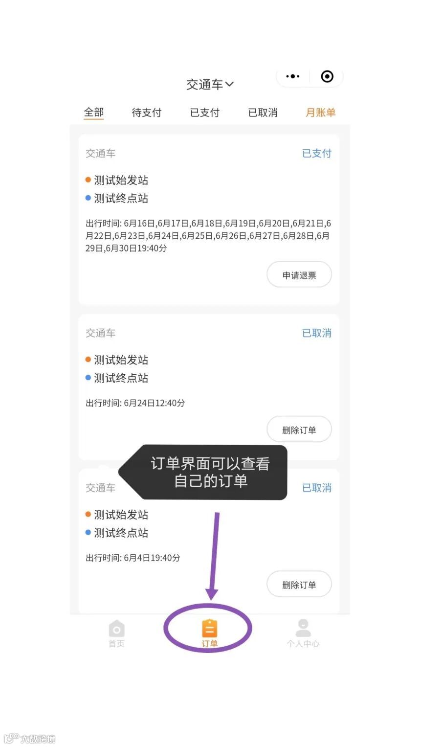 订单页面可以查看自己的订单。进入订单详情页,有具体的出行明细。
