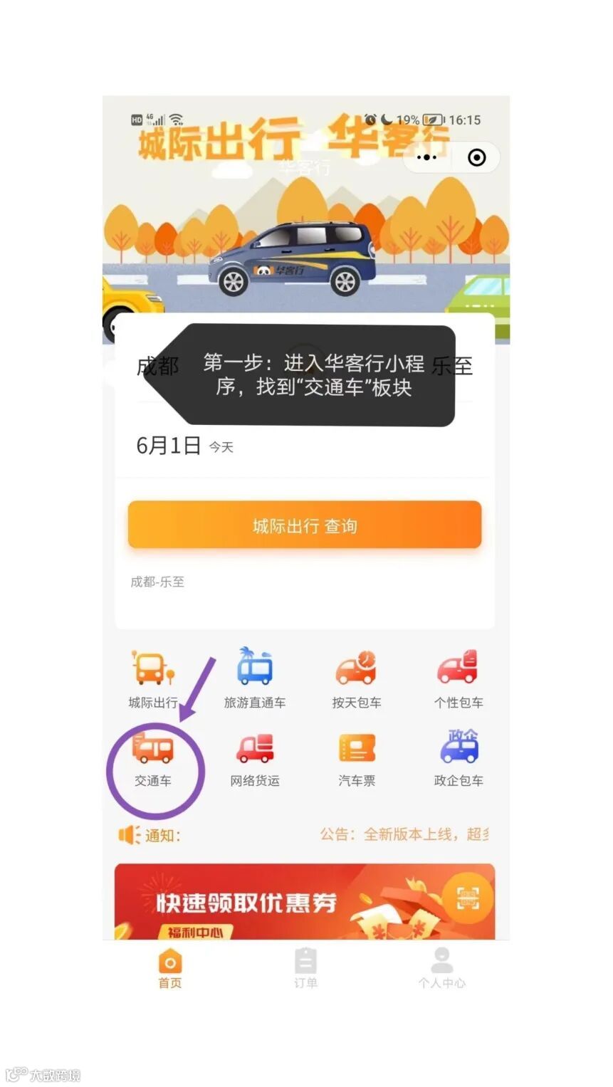 进入“华客行”小程序,找到“交通车”板块,查看现在各个班次。