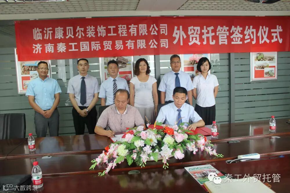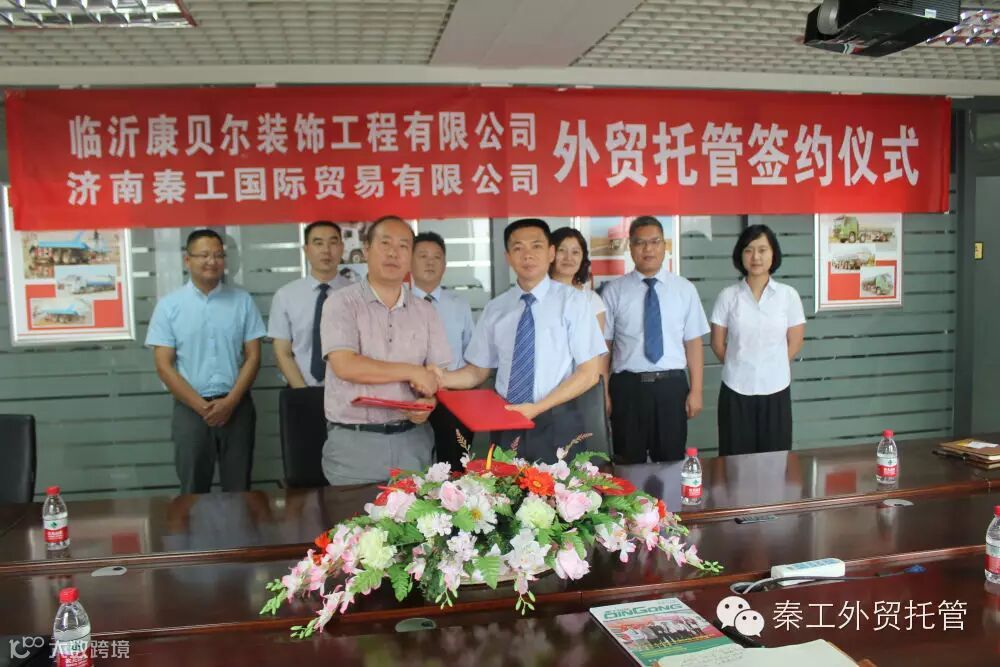 2015年8月17日,秦工国际与临沂康贝尔装饰工程有限公司外贸托管签约仪式在秦工结谊厅成功举行。
