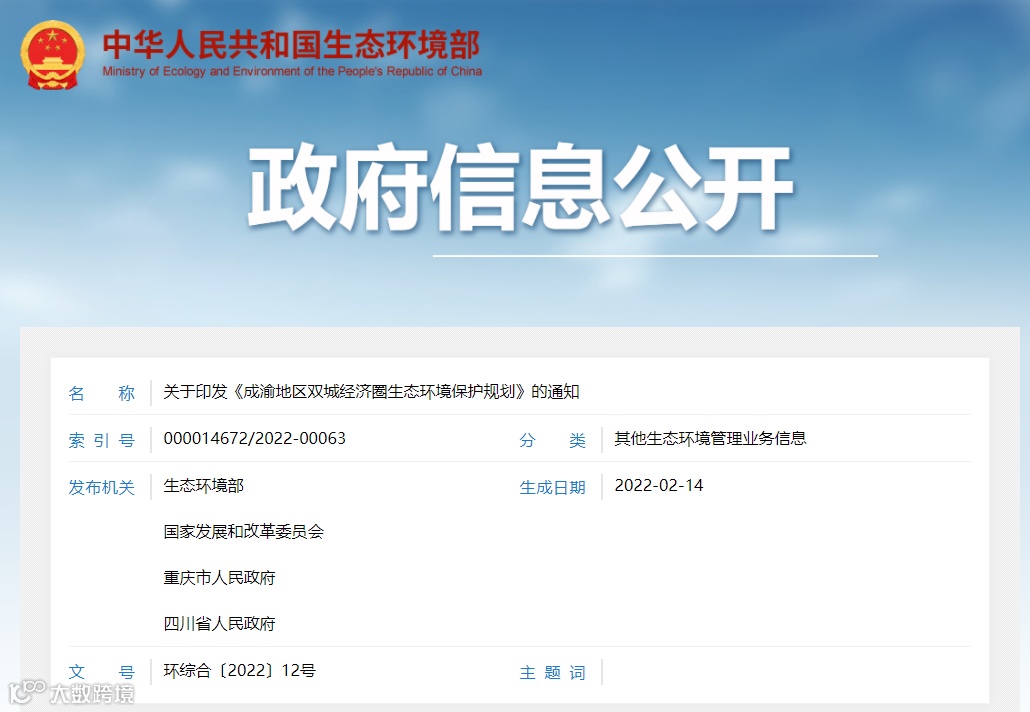 《成渝地区双城经济圈生态环境保护规划》