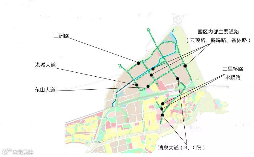 它们分别是:三洲路、二里桥路、永顺路、港城大道、东山大道、清泉大道B段、清泉大道C段、云顶路、鹤鸣路、香林路。