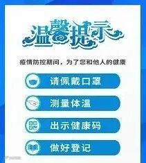 提前预约购票,主动配合场所测量体温、扫场所码等措施。佩戴好口罩,有发热、咳嗽等症状时不要前往。