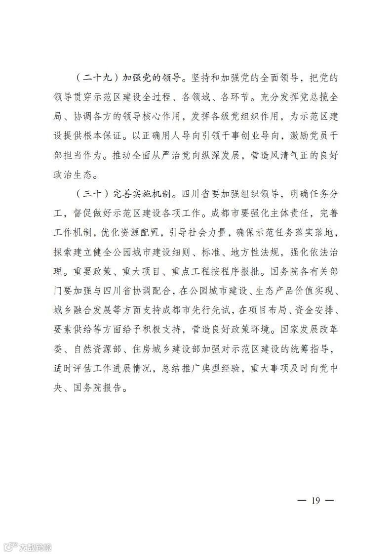 关于印发成都建设践行新发展理念的公园城市