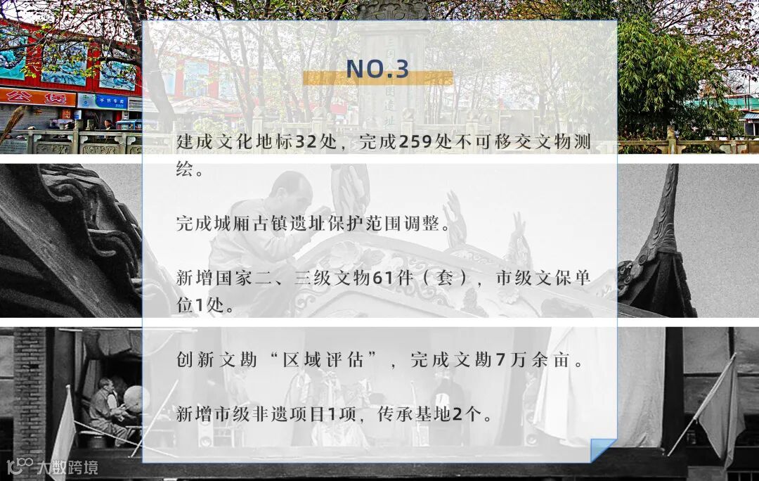 加快推进区足球驿站、基层公共文化服务中心、全民健身工程建设,打造流沙河纪念馆、文庙研学中心、绣川书院国学讲堂、城市书屋等文化美空间。觉皇殿争创全国重点文物保护单位,家珍专祠争创全国爱国主义教育基地,城厢镇争创“民间文化艺术之乡”。深入推行文勘“区域评估”,建成青白江文物整理修复基地。持续提升艺术周末·快乐人生、百村文体、绣川讲坛、天府绿道健康行等文体活动品牌。