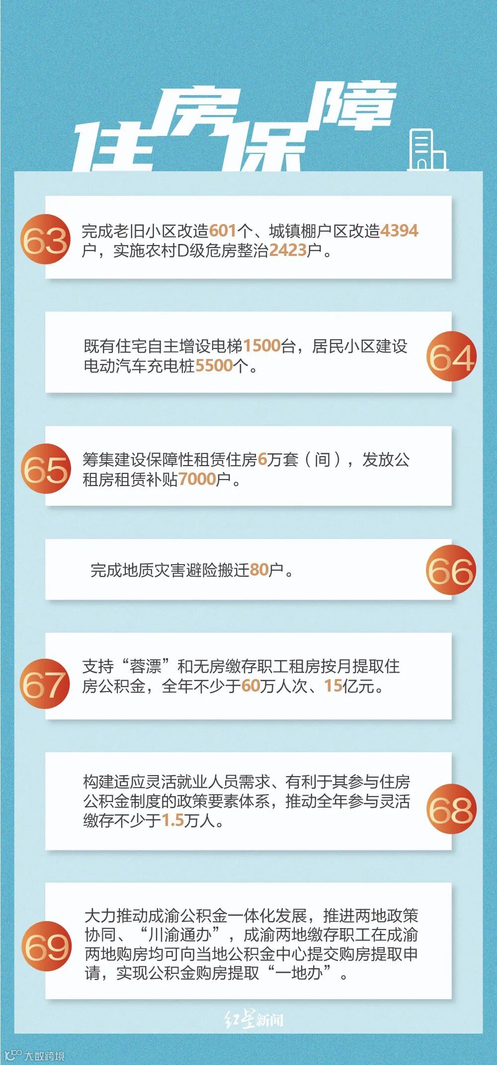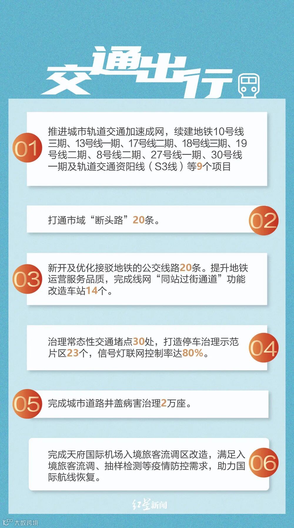 报告中公布了成都市2022年民生实事工作目标,涵盖交通出行、市容环境、就业创业、扶贫解困、教育助学、医疗养老、食药安全、文体惠民、住房保障、便民服务十个方面,细化为82个具体事项。