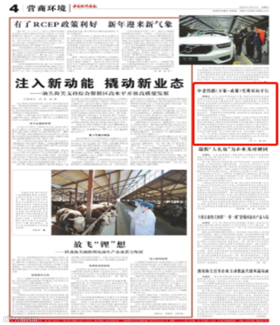 2月10日,《中国国门时报》04版以“中老铁路(万象-成都)实现双向开行”为题,报道了首列回程中老铁路(万象-成都)国际班列成功运抵成都国际铁路港,中老铁路实现了双向开行,今后将抢抓RCEP红利,积极拓展南向通道线路网络等相关情况。