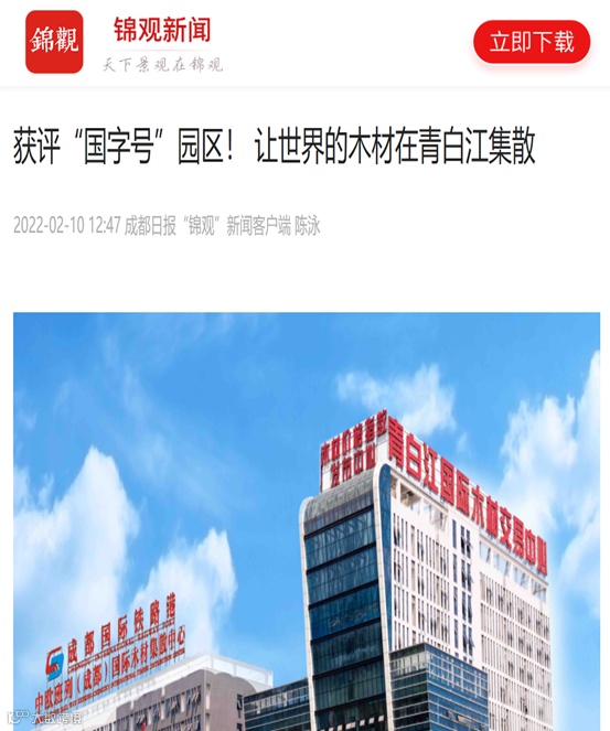 2月11日,锦观新闻以“获评‘国字号’园区!让世界的木材在青白江集散”为题,报道了依托优越的地理位置,青白江木材加工贸易示范园区成为国际木材进口前沿市场,成功获评国家林业产业示范园区,未来将继续围绕国家林业产业发展,为外贸发展贡献力量等相关情况。
