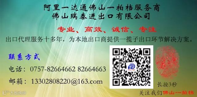 佛山瑞泰进出口有限公司(Foshan Realtime import & Export Co.,LTD)一直从事出口代理业务,具有一支专业高效的团队来提供细致的本地化服务。现已成为阿里巴巴一达通授权的一拍档服务商,它一方面依托阿里一达通现有的出口综合服务平台,整合优质的资源,在物流、通关、退税、金融等服务中,提供一条龙出口环节整体服务方案,同时结合自身优势,对一达通做不了或者做不好的个性化需求也提出一揽子的解决方案。