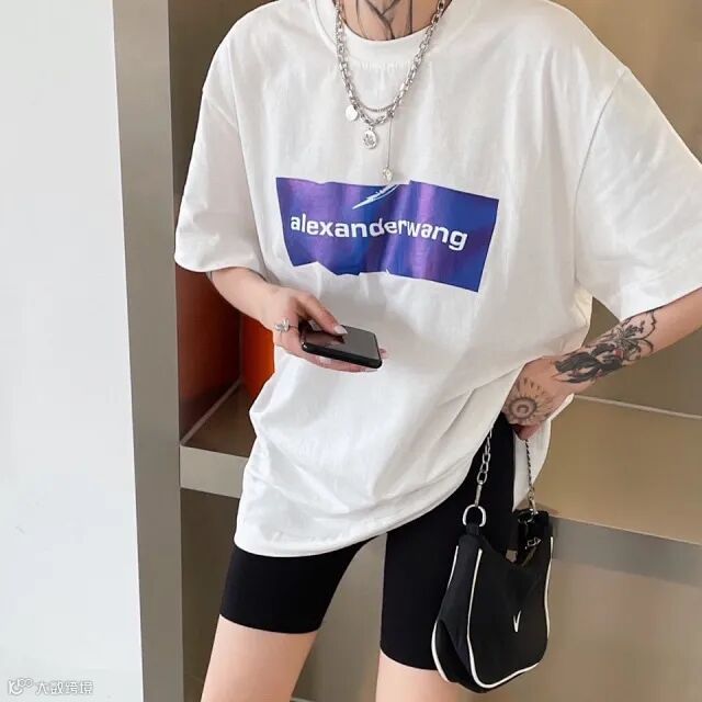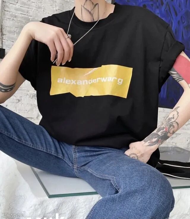 @W亚历3大王21SS褶皱彩色logoT恤,