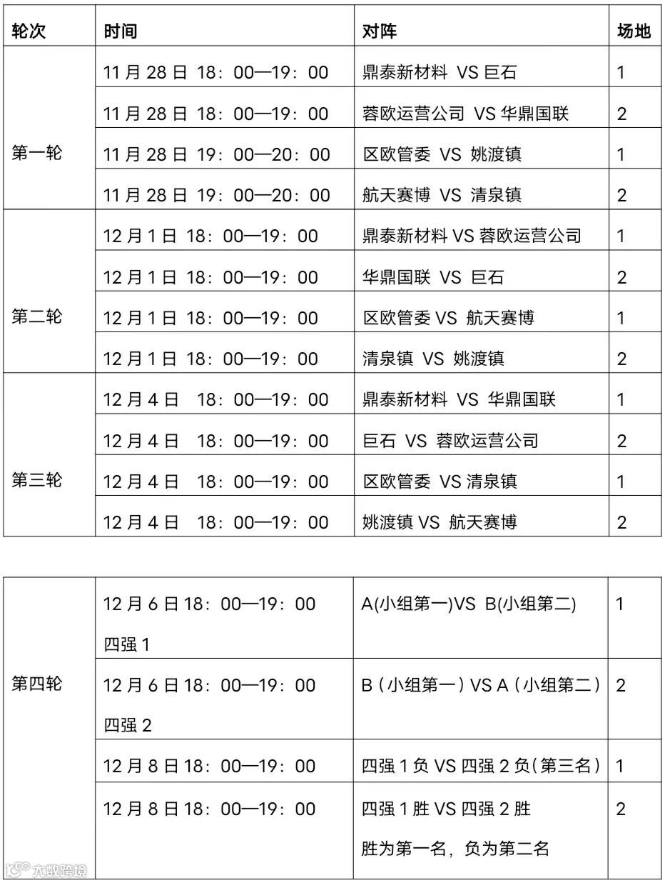此次足球赛由区欧管委、清泉镇、姚渡镇、园区企业组建的8支代表队参赛,比赛从11月28日持续到12月8日,将从16场赛事中角逐冠亚季军团体奖。