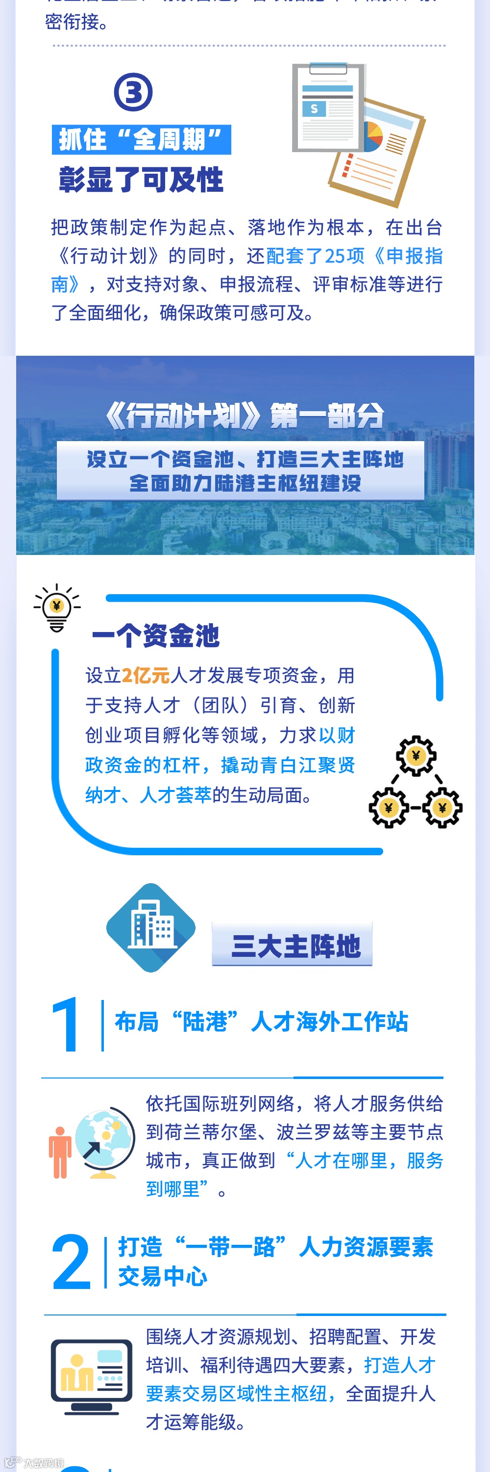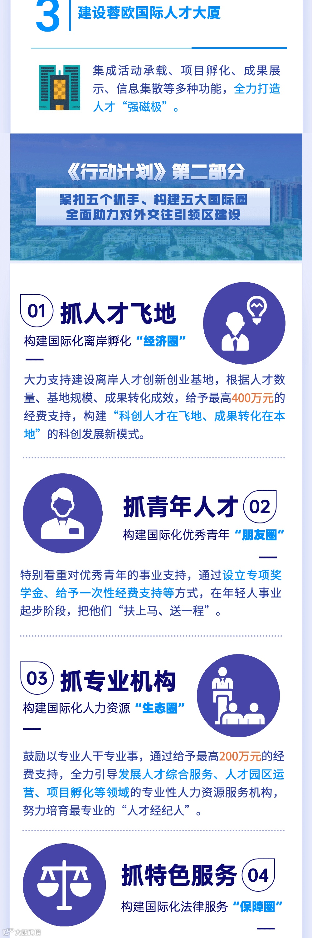 《行动计划》确立了“构建国际化人力资源协同创新枢纽”的人才工作定位,建立“政府主导+社会参与”人力资源共享新模式,聚焦人才创新创业全周期所需,全力打造政策链、人才链、创新链、产业链、金融链、生态链“六链”融合的最优人才发展生态。