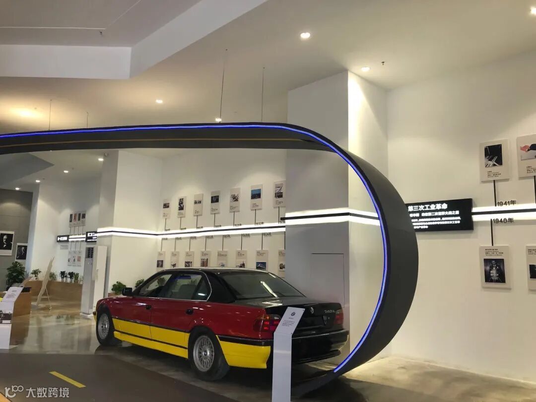 比如说在德国国家馆,一辆于2001年停产的宝马740跃然于眼前,怀旧的车型,复古的红黄拼色,在这个区域,你可以从汽车文化看起,再到纵览整个德国的工业革命。