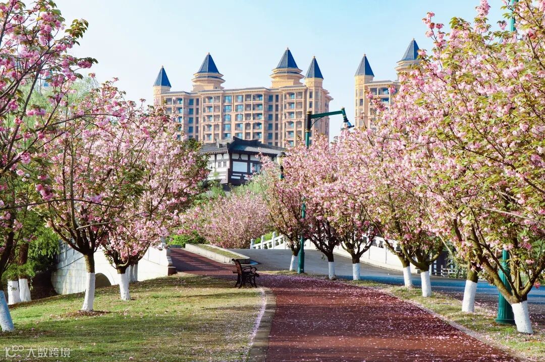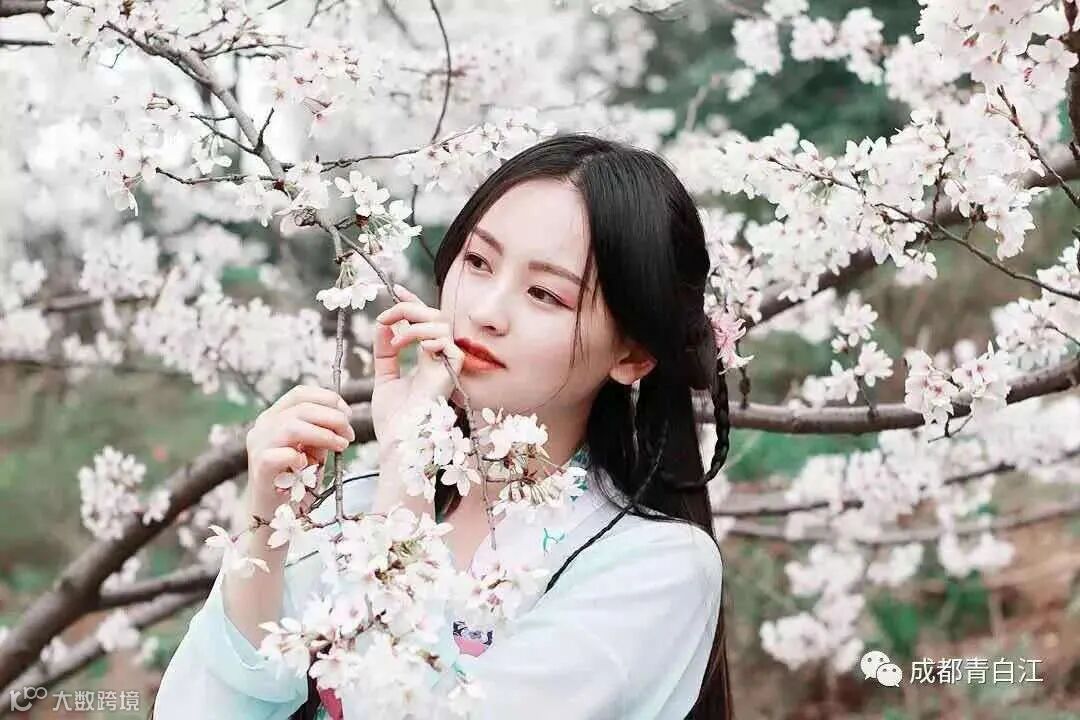 粉白相间的春樱将青白江点缀成了