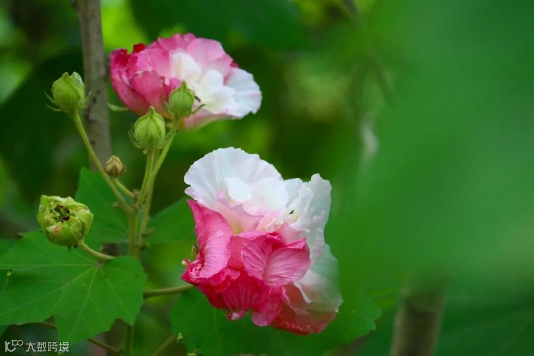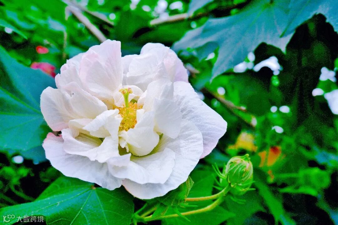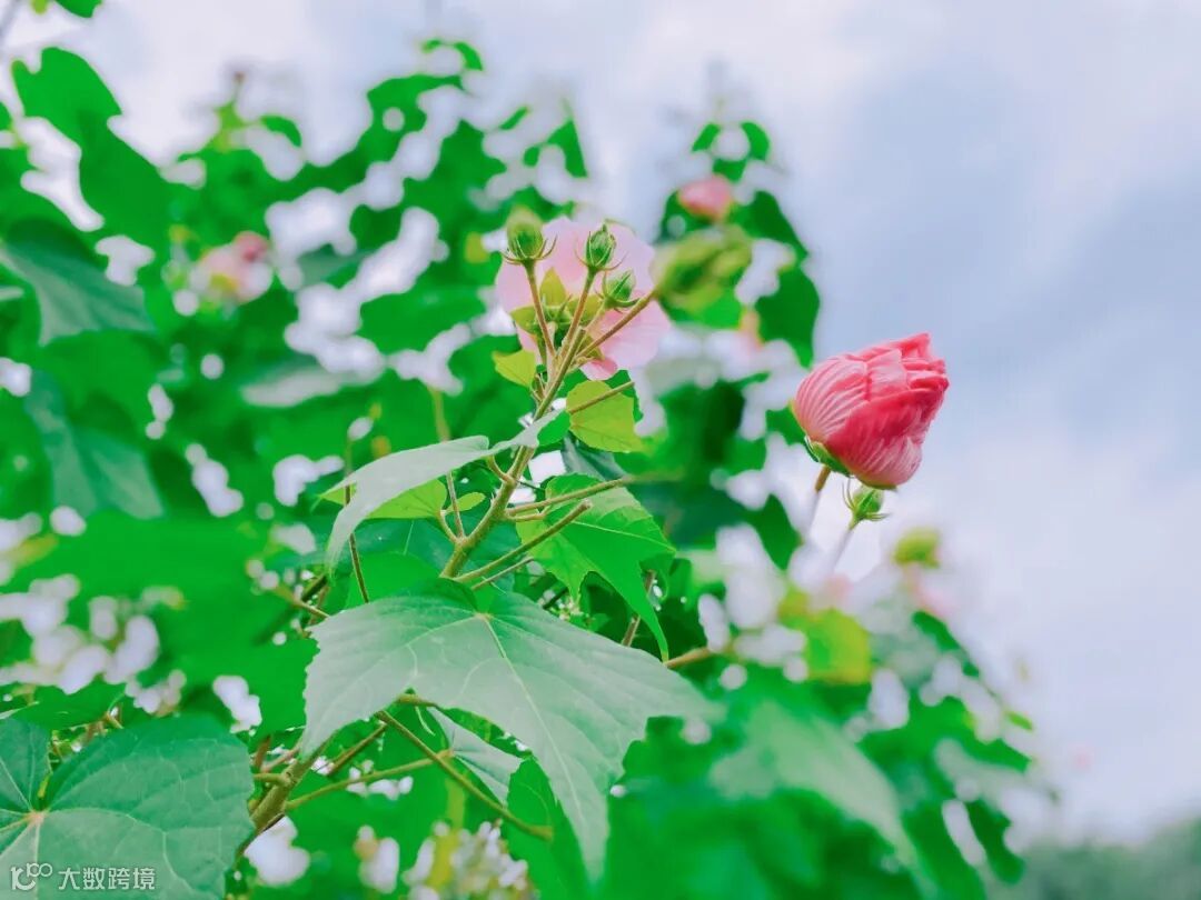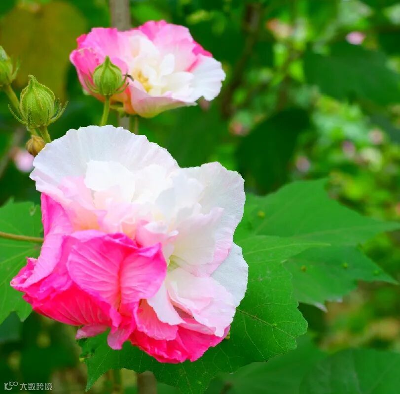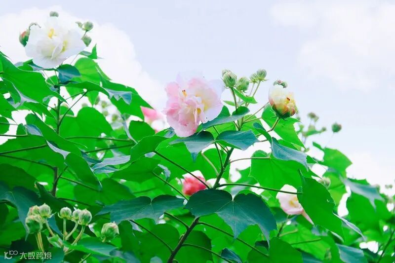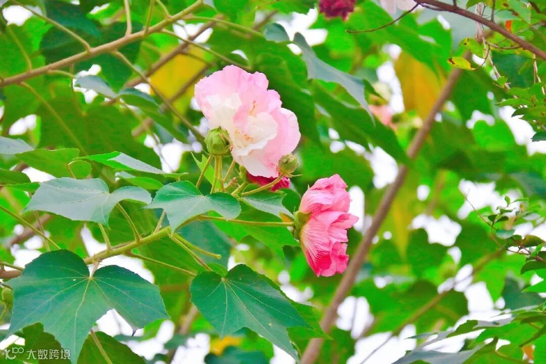 芙蓉花星罗棋布掩映于枝叶间