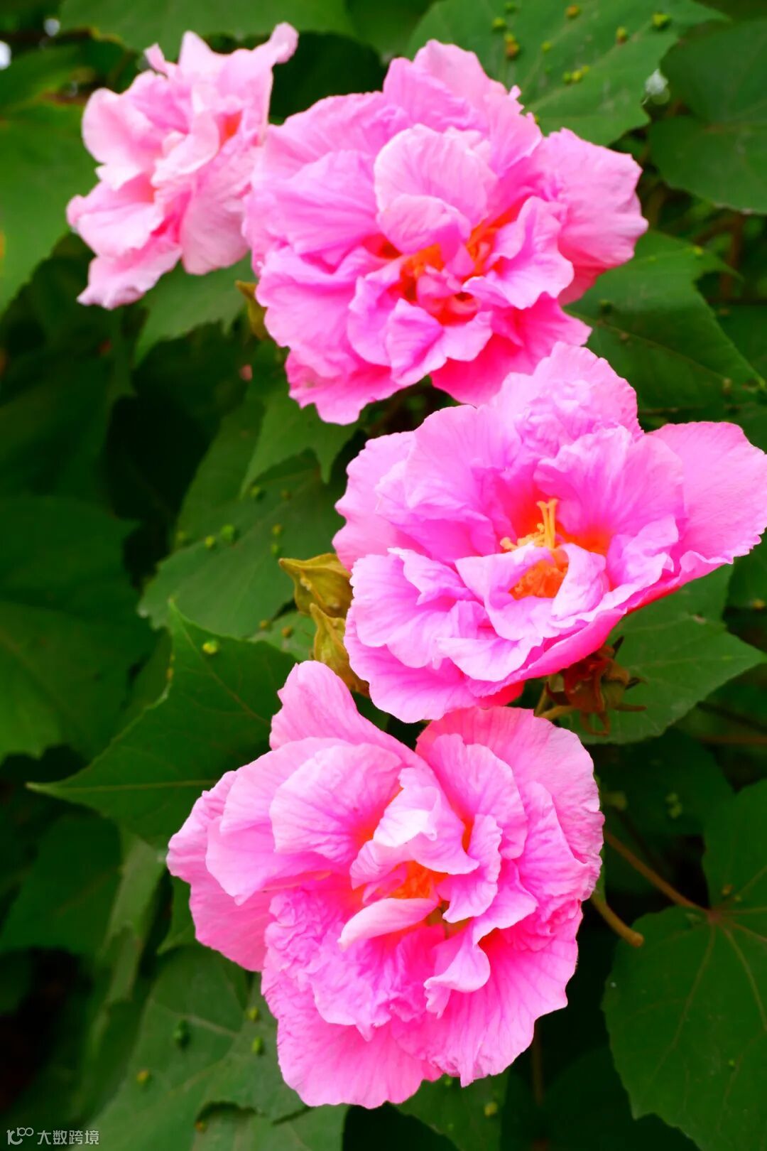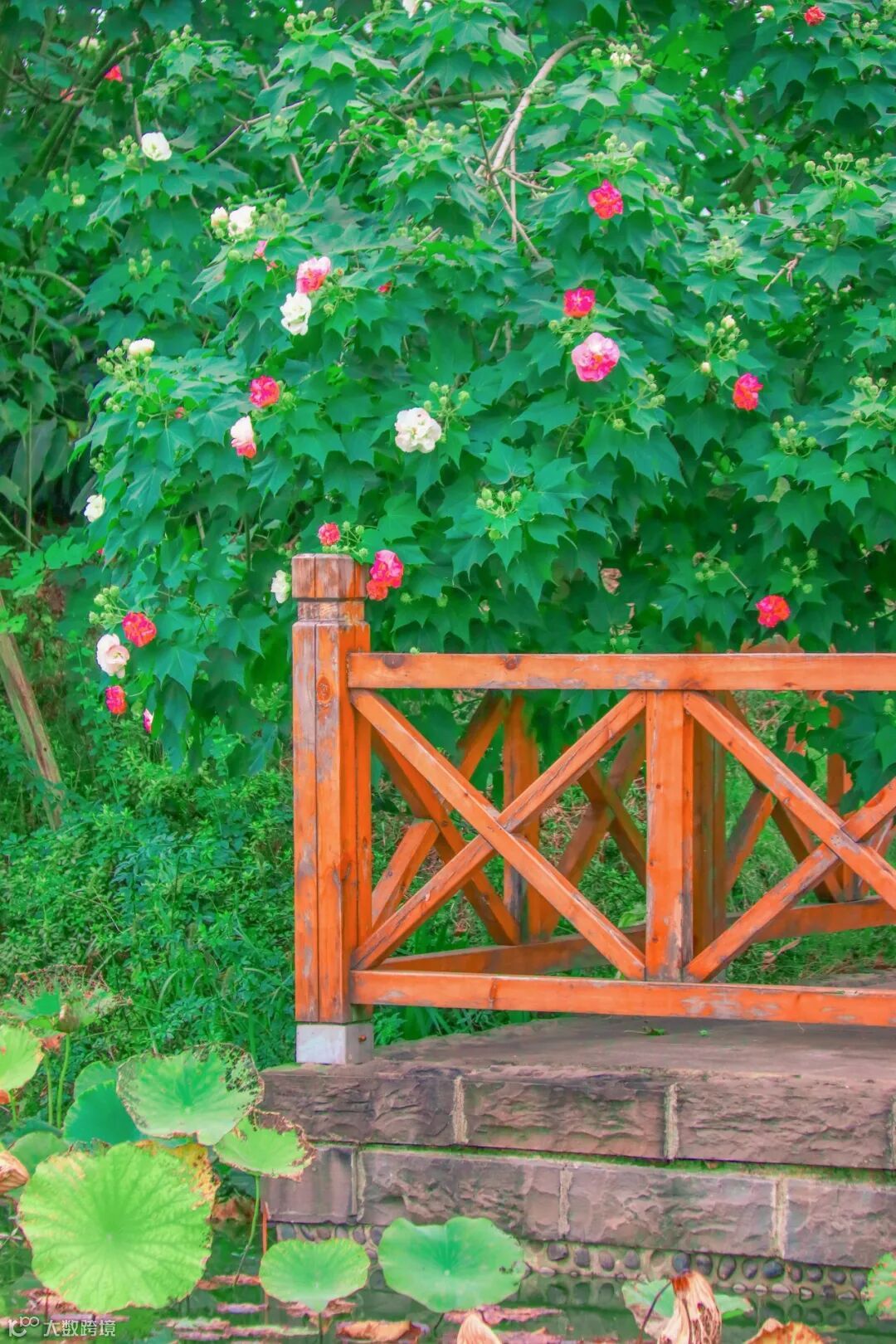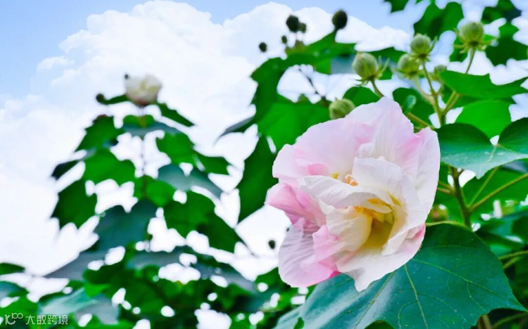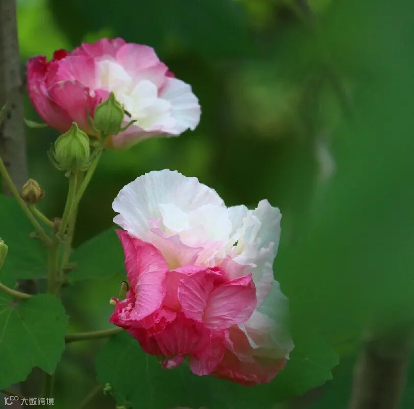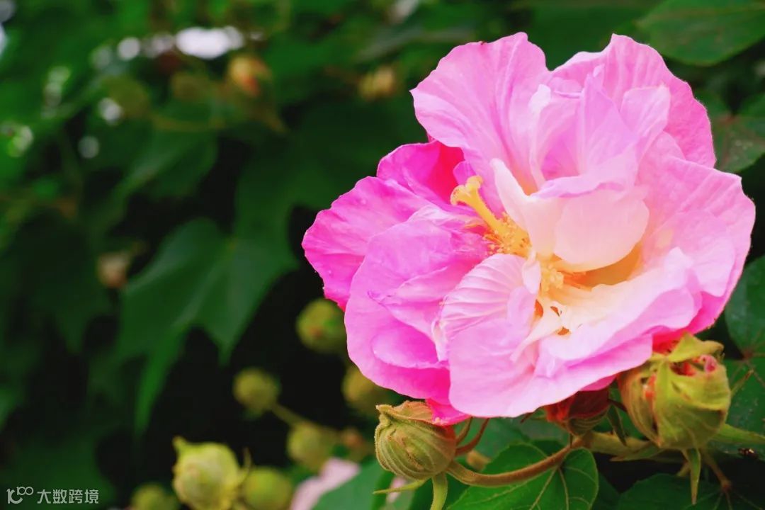 芙蓉花星罗棋布掩映于枝叶间