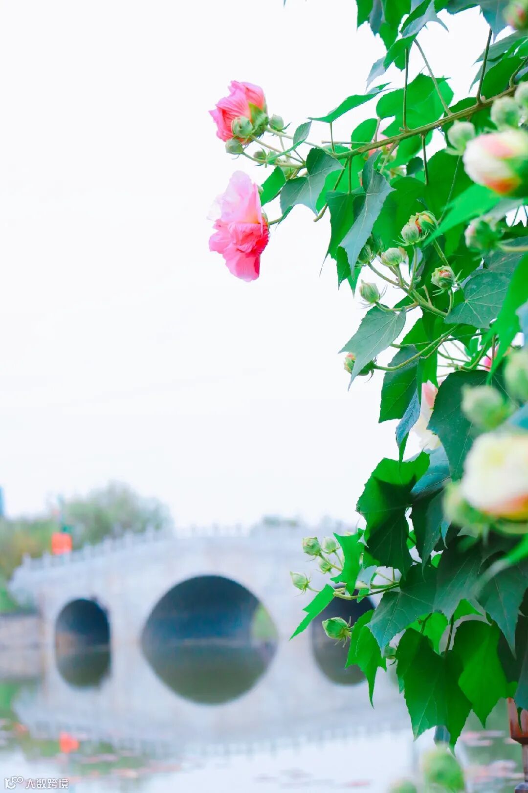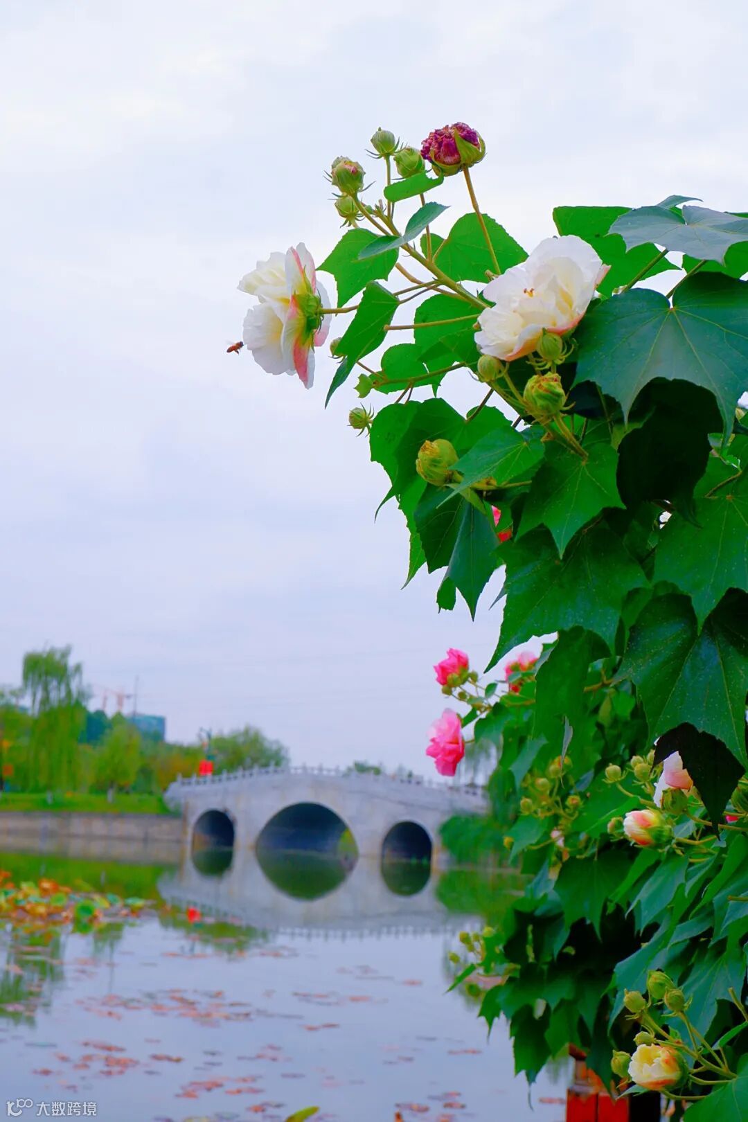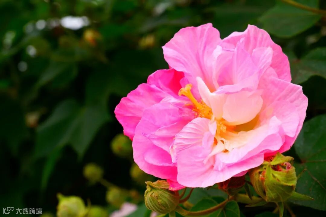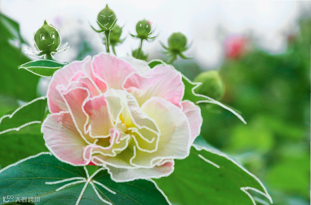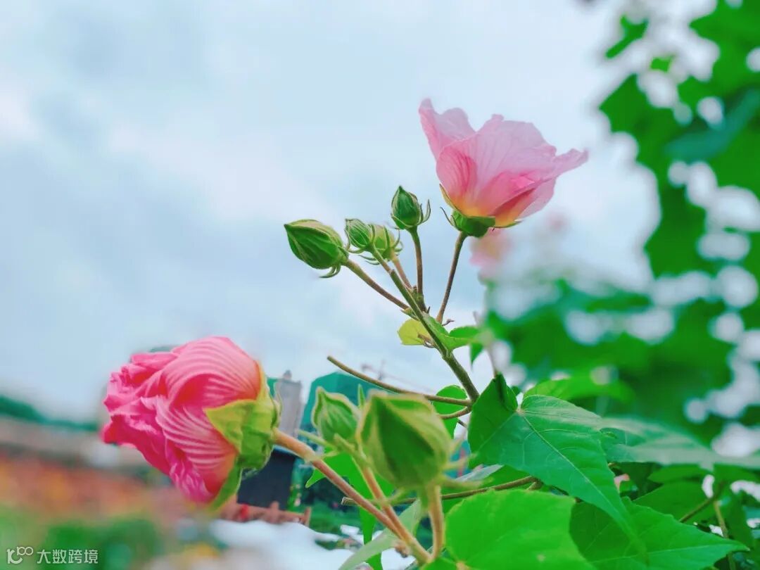 芙蓉花星罗棋布掩映于枝叶间