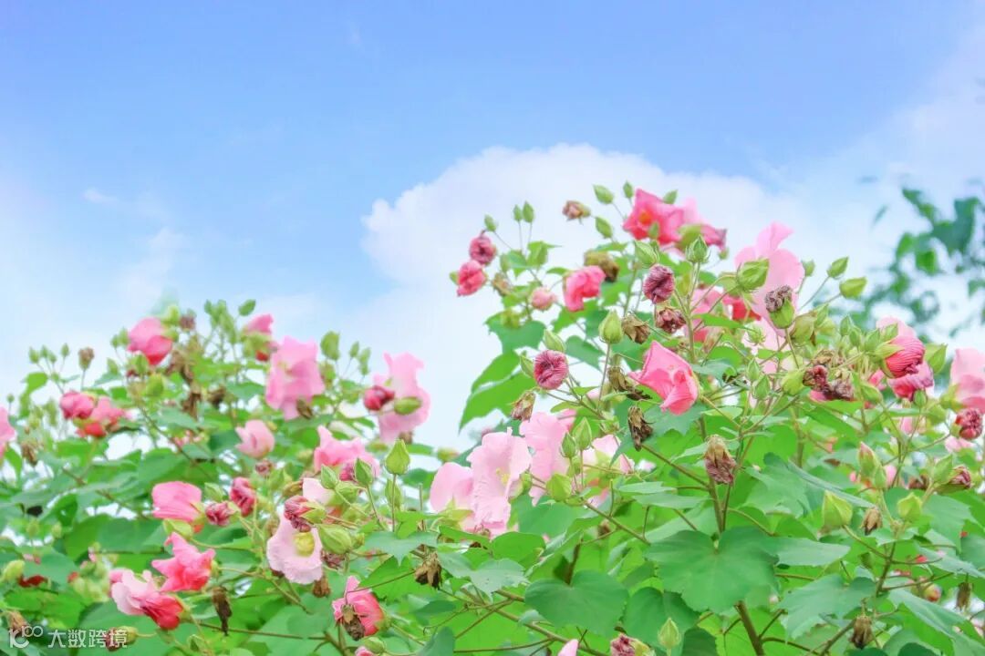 芙蓉花星星点点,花团锦簇