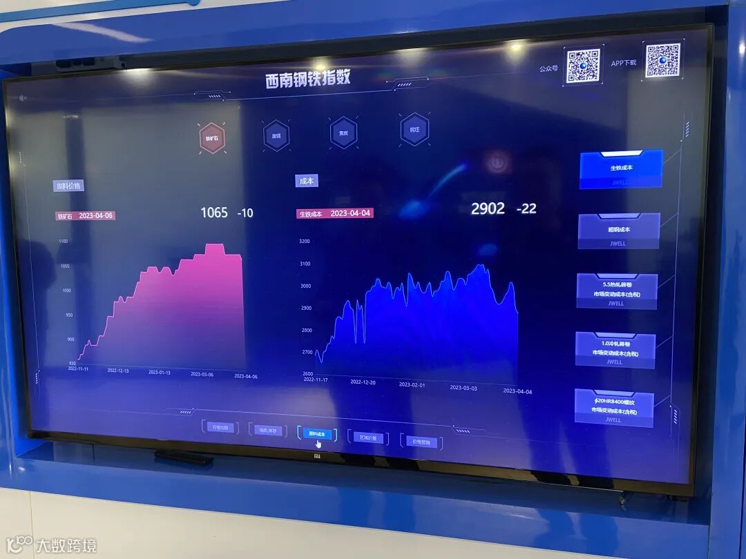 一款电子屏幕显示“铁矿石”“废钢”“焦炭”“钢坯”等不同功能板块,呈现出该款产品的价格走势。这是4月7日下午,小布在成都积微物联集团股份有限公司(简称“积微物联”)所见的一幕,其打造的“西南钢铁指数”平台直观地反映了云南、贵州、四川、重庆等省市钢铁市场交易行情。