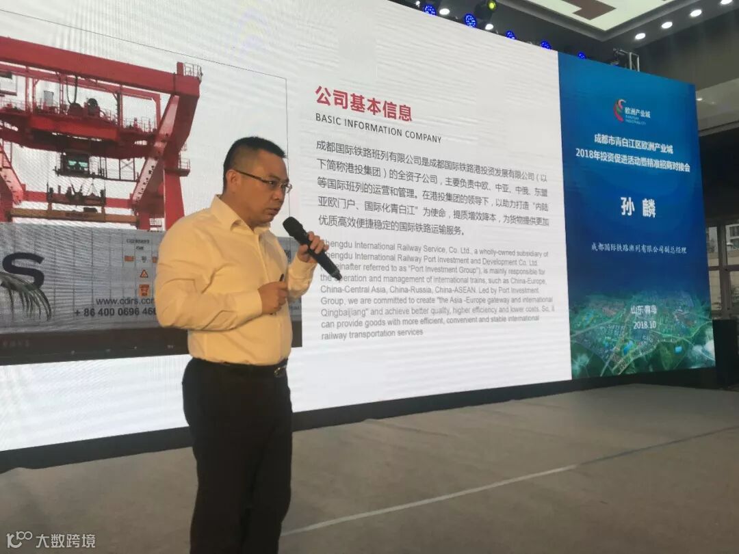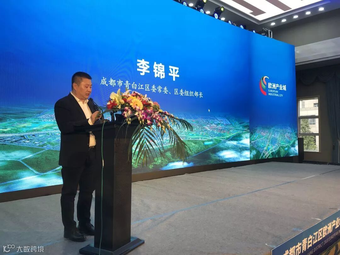 李锦平作了热情洋溢的开篇致辞,青白江区委组织部、区投促局、区欧管委、班列公司等单位也分别对青白江区投资环境推介、人才政策推介、蓉欧班列和欧洲产业城进行了专题推介。