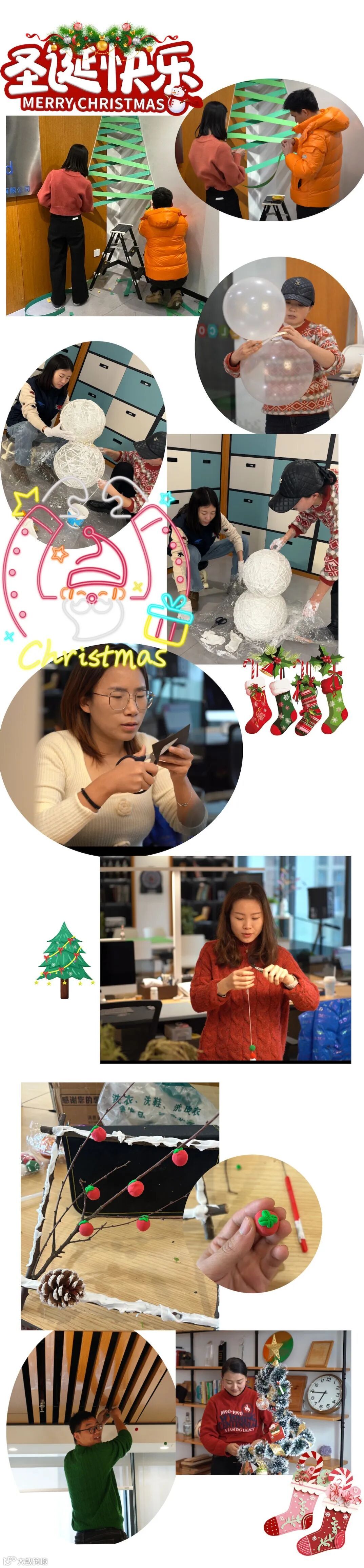 同事们忙碌的身影与节日的装饰相映成趣。