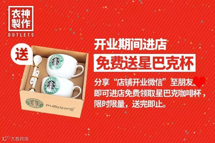 外贸出口成衣工厂店--清远店,本周六(11月28日)终于与大家见面了!!作为见面礼,它给我们带来的是赤裸裸的福利!!星巴克咖啡杯、法国时尚围巾任性送,开业期间,只要加衣神制作微信号,参与微信活动,即可免费领取礼品(每人限领一份),对!一分钱也不用!!