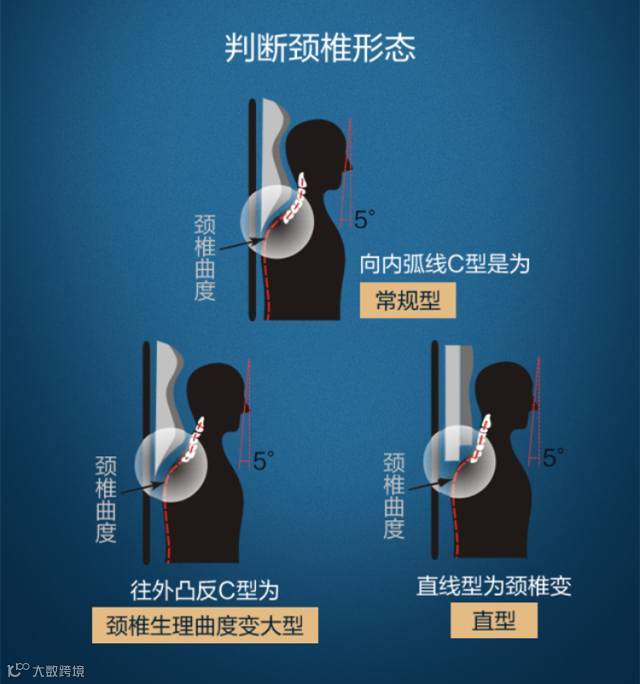 如图所示从上至下到第七节颈椎,摸的过程去感觉,你是向内凹的弧型,还是向外凸的弧型或者是直线型,一般分为这三种状态,以得出您需要睡的枕头硬度。