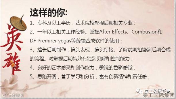 诚聘影视后期制作(1名):