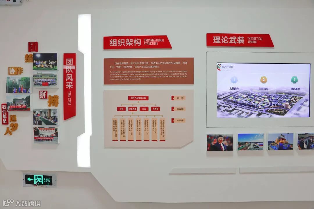 党建引领版块以其红色风格和其他模块区分开来,独具特色。欧洲产业城积极打造两新党建品牌,探索产业社区治理新模式。分别从理论武装,组织架构,团队风采三个方面展示了园区党群工委组织建设情况。