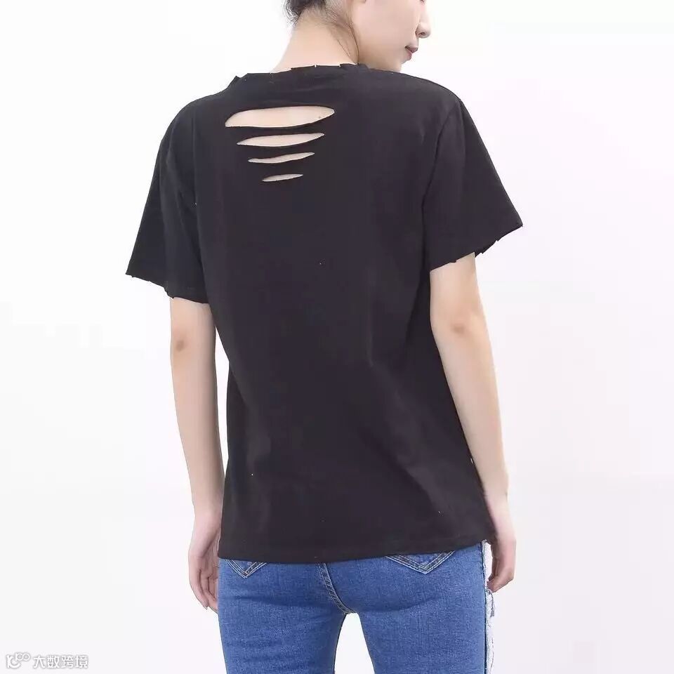 T恤,特价39元。破洞半袖T恤,时尚休闲,潮范儿十足。