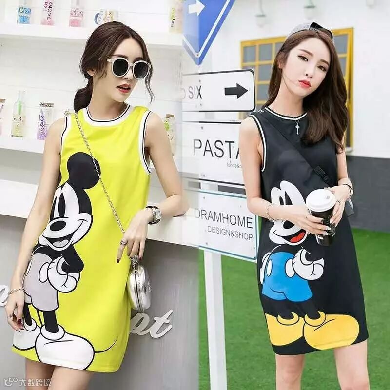 连衣裙,110元。背心连衣裙,可爱米奇图案印花,休闲运动,可爱俏皮。