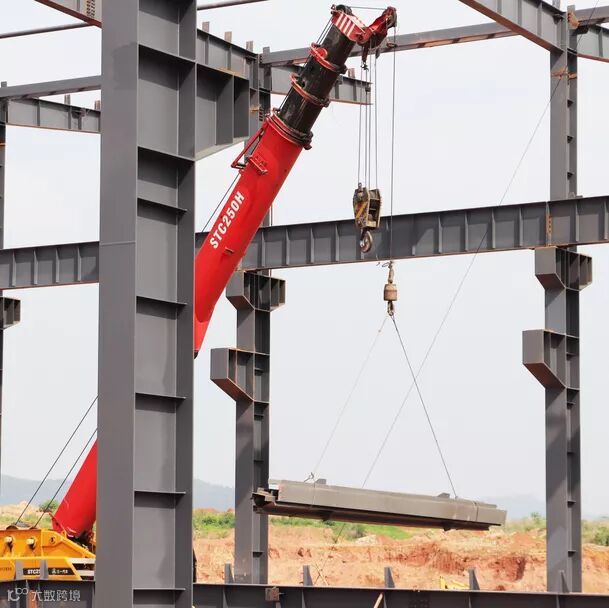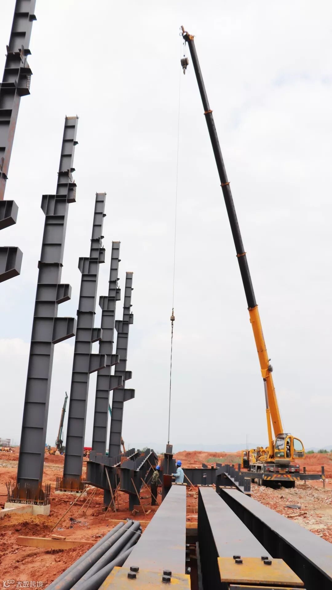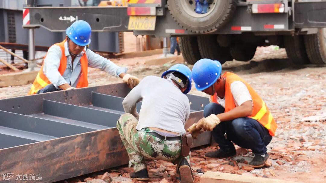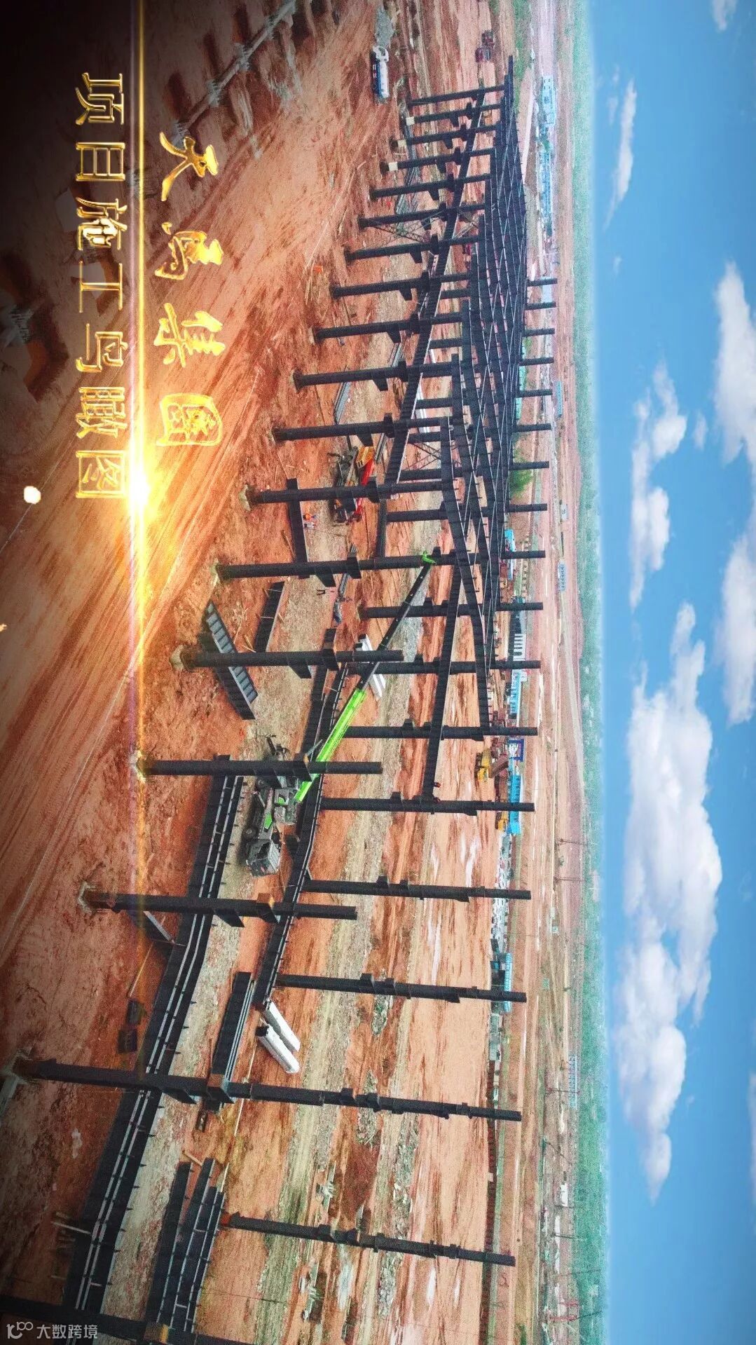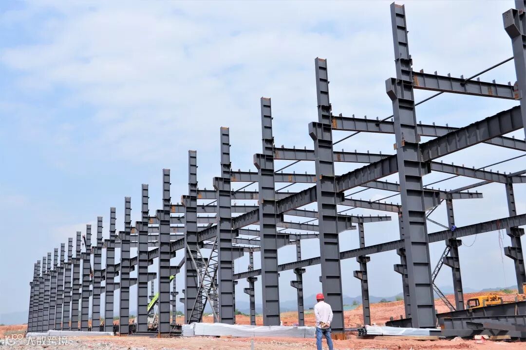 高空烈日下的钢架映出工人影影绰绰的背影,
