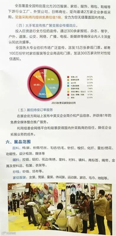 展会范围:各类面料、辅料纱线、家纺服装。
