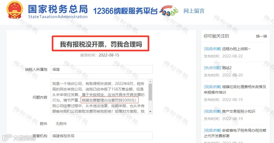 注:这个案例,实务中很少见。目前看到的只是12366的答疑,并没有看到相关的行政处罚书。所以,最终会不会让罚款落地,现在还不好说。