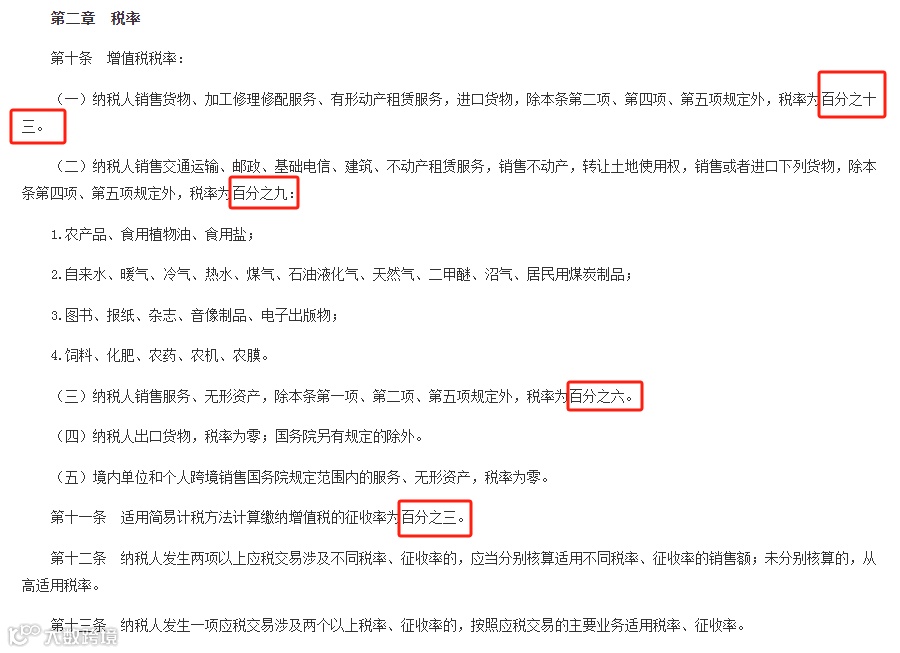 6% 税率:销售金融、现代、生活服务及增值电信服务等领域。