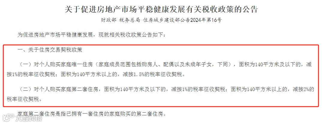 个人购买家庭第二套住房,面积为 140 平方米及以下的,同样减按 1% 的税率征收契税;面积为 140 平方米以上的,减按 2% 的税率征收契税。