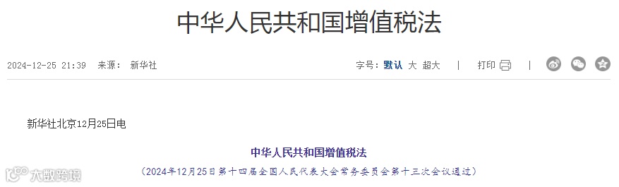 《中华人民共和国增值税法》自2026年1月1日起施行