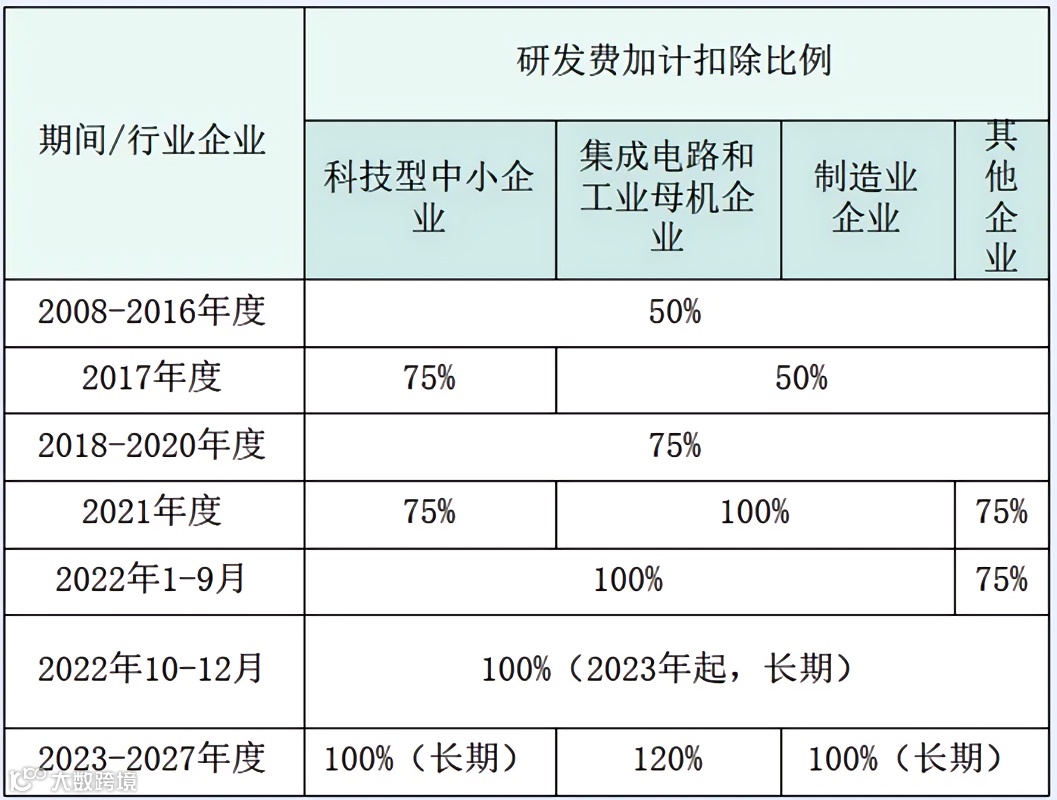 1、除集成电路和工业母机外,研发费用加计扣除比例统一为100%