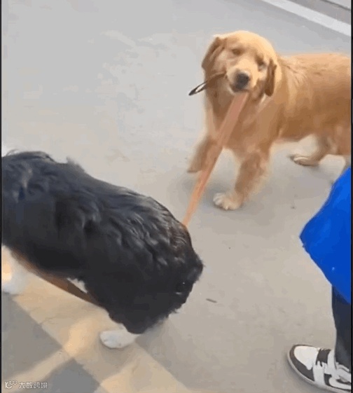 两只狗子相互间有些争宠,