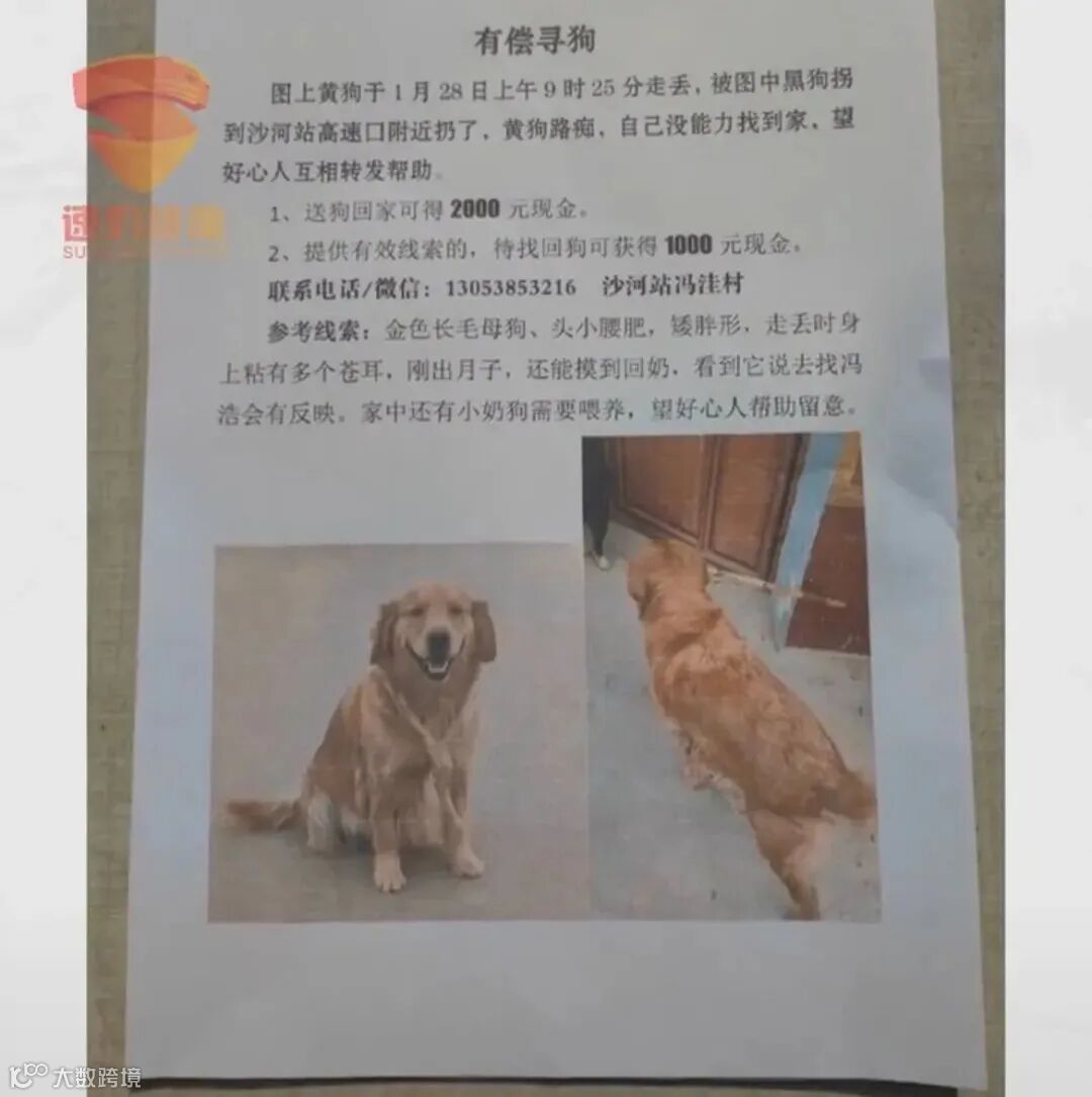 查看监控后,他赶紧发布了寻狗启示。
