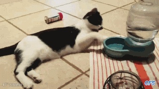 懒得起来喝水,还是用爪子捞方便。