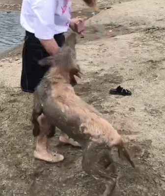 导读:当麻麻给狗洗澡时,大概是下面这样……