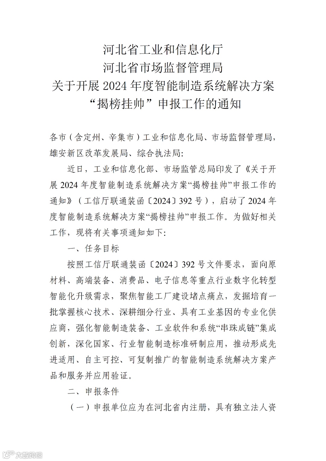 关于开展2024年度智能制造系统解决方案“揭榜挂帅”申报工作的通知