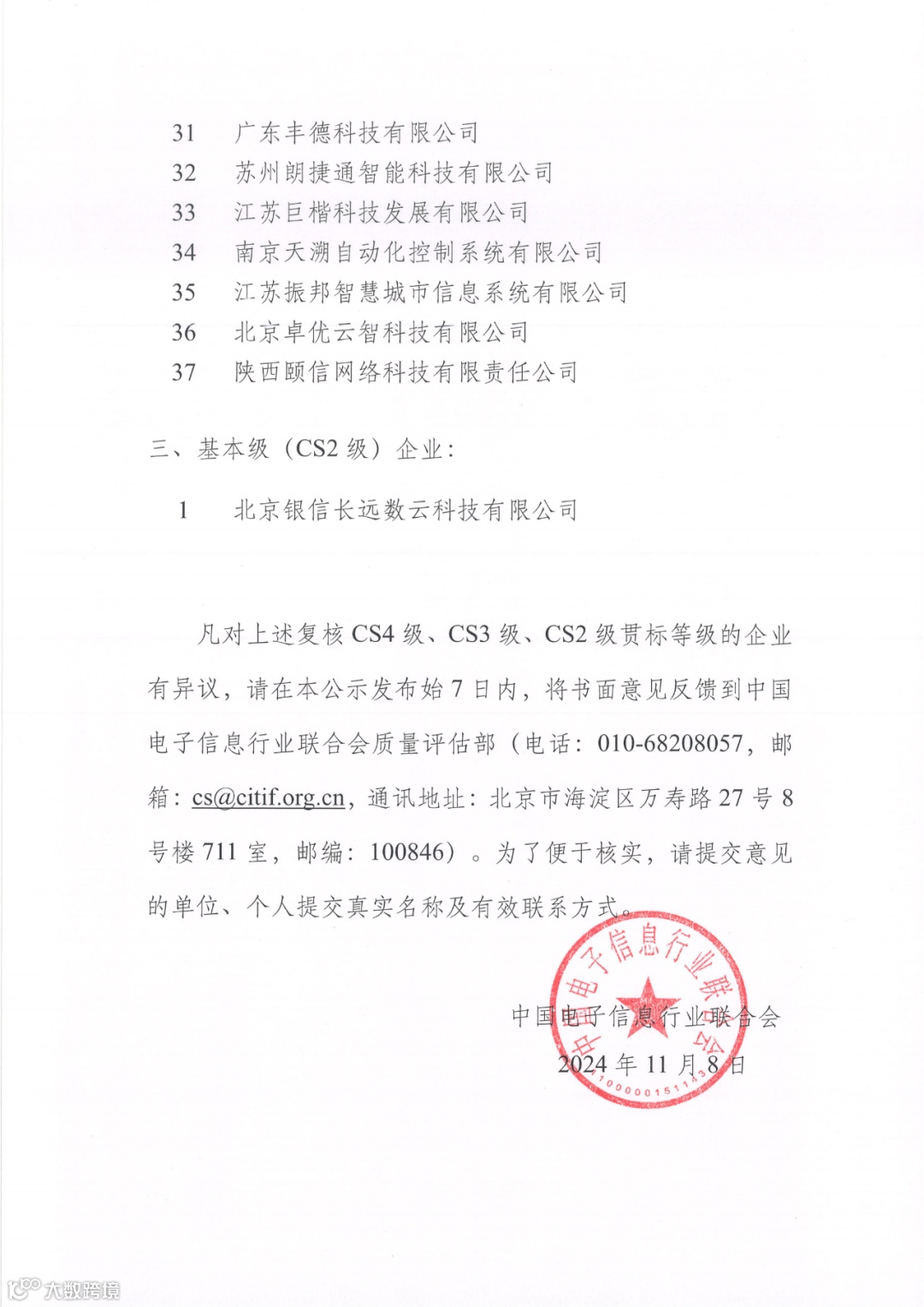 2024年第二批信息系统建设和服务能力贯标换证企业名单公示